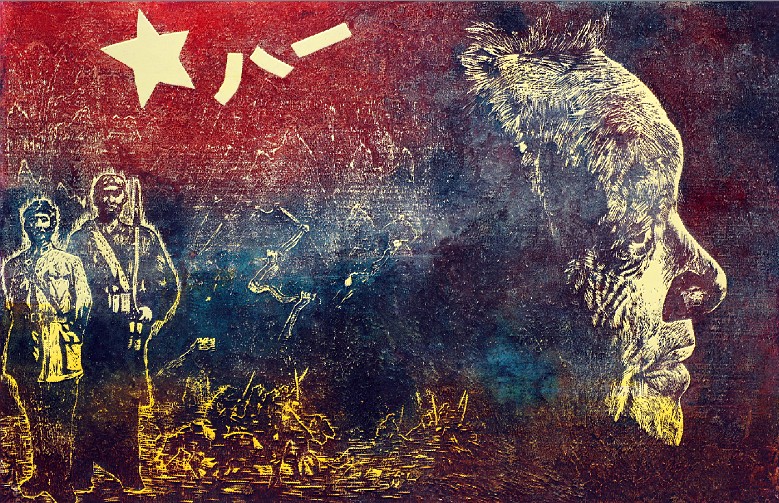 军魂(套色木刻)黄元强-1998年收藏神州版画博物馆