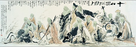 在8月27日的“北京中都国际拍卖秋季艺术精品拍卖会”上,当代著名画家籍忠亮一幅长4米、宽1.5米水墨人物画巨作《十八罗汉图》以300万元被藏家拍得;他的另一幅长1.8米、宽0.9米水墨人物画作《竹林七贤图》则以136万元在拍卖会现场成交。这两幅作品均是古典人物画题材,是画家近期作品。