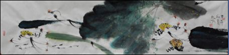 翻阅韩志冰先生的荷花作品,有种清清池水边凭栏四顾的感觉。但见那满池青翠,或傲然出尘,或顾盼着,如语如诉;或恣肆如瀑布式的倾泻于丽日朗照之下;或轻盈地飘摇在清风中,其墨叶,浓的蓊然沉郁,淡的洒然飘逸,浓浓淡淡间,纯粹得恍若天地鸿蒙,中锋粗壮而不涩滞,侧锋空灵而不枯扁,亭亭的荷茎和荷芰生机勃勃地滋长蔓延着,支撑着生命的绚烂绽放。粉黛出水.天生丽质似亭亭玉立的仙子在碧波中美目流盼。草下游动的小鱼.掠过水面的蜻蜓.微风骤起,掀起一片绿浪,送来阵阵荷香……