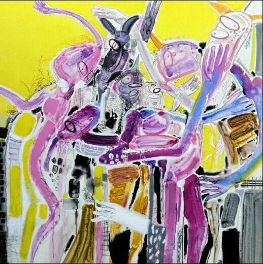 以上六位艺术家,均和我一样生活在宋庄,所以,我对他们都比较了解。其实,宋庄只是一个驿站,并非家园的概念,这里面的艺术家没有一个是宋庄人,只是居住此地而已。其中岳敏君出生于大庆,林墨就是哈尔滨人,他们与黑龙江的关系,实际上要更深于宋庄。我提到“重奏”的概念,就包含了这些艺术家的多重身份与多重记忆。当然,也包含了此次赴京的这些黑龙江艺术家,对宋庄的某种认同。如果说宋庄代表了中国当代艺术的策源地,那么,这些黑龙江艺术家来此处办展,则表明了他们早已把自己归属于当代艺术之中。事实上,参加此次展览的这几位黑龙江艺术家,都是黑龙江当代艺术的中坚力量。其中田伟平算是领军人物,不仅一直在利用自己的美协领导和教师身份传播当代艺术,也在身体力行地进行语言探索与形式试验。他的抽象表现绘画,融入了多种材料,使画面从单一走向丰富,强悍与粗粝的语言形式中,透着许多耐人寻味的细节。孙作范是黑龙江的老牌当代艺术家,虽然远在哈尔滨,但却一直心系着潮流,关注着文化中心。他的作品带有一些“艳俗艺术”的倾向,但又增加了许多绘画性,呈现出某种大俗大雅的特征。薛超喜欢在作品中营造一种情绪,画面的戏剧性很强,通过将一些平常事物仪式化,穿越现实的碎片,让人联想到悠远的古典主义精神。杨剑涛刻画的蘑菇云,绚烂而又令人恐惧,犹如今天的现实,和谐社会的背后却是危机重重。杨剑涛通过画笔来折射这种危机,也是给今天的盲目者一种警醒。崔多笔下的小红人,像梦里的精灵。他可以是崔多的自我投射,也可以是崔多想象出的一个新生命。总之,他象征了一种倔强的个体,以及面向黑暗的抗争。李明的绘画,将立体主义与抽象艺术相融汇,形成一种扭曲而纠结的图式,暗示出当代人的生命状态,都无给人一种“剪不断、理还乱”的生存感觉……有几位艺术家因为素未谋面,只是看了作品图片,所以,我只能凭着直观的认识简单评说几句。其实,艺术就是直觉,不管熟与不熟,都无法用语言来概括。我喜欢那句话:语言的穷尽之处,正是表现的开启之时。是的,这就是艺术,她是一种深刻的抵达,我们都可以通过这种抵达,返观出自身。