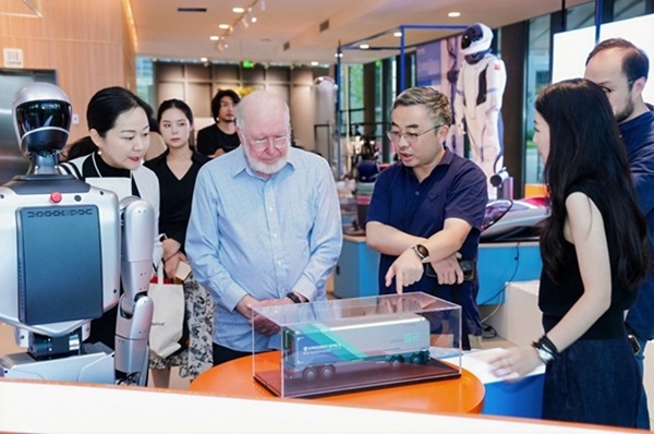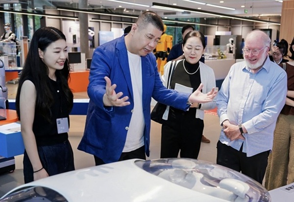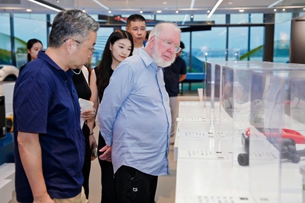 此次参访是凯文·凯利中国行的重要一站。他现场观摩了中国设计智造大奖(DIA)2025优秀作品及新一代智造成果,深入了解中国在人工智能、未来制造、可持续创新等领域的前沿探索,并对展览所展现的技术与美学融合的设计作品给予高度评价。