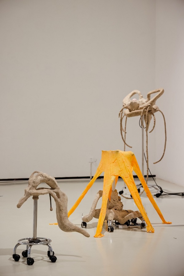 郭宇星《B-19F》 植物纤维泥、万向轮椅底座、椅子扶手、乳胶、控制器、石塑粘土 72cmx72cmx80cm 2025年