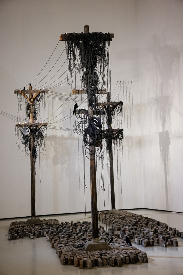 张钿昊《回响》 电线杆、青砖、电线 500cmx300cmx1800cm 2025年